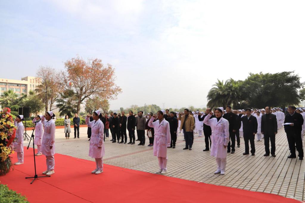 我校学生代表在熊慬校长铜像前集体诵读南丁格尔誓言。