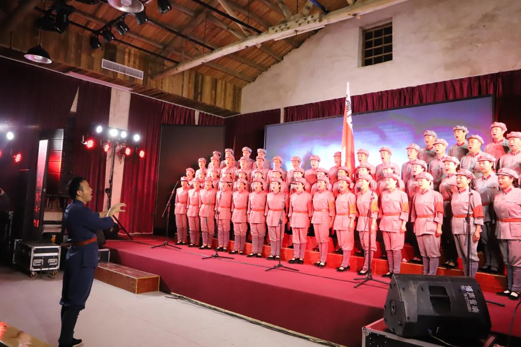 观看一场《长征组歌》。4月9日晚,全体人员在住地红色大礼堂观看了于都长征源合唱团演出的《长征组歌》。四渡赤水、飞跃大渡河、过雪山草地等10个篇章再现了中国工农红军两万五千里长征的惊人壮举,让观众仿佛置身于80多年前那场彪炳史册的远征中,令人久久不能平静。