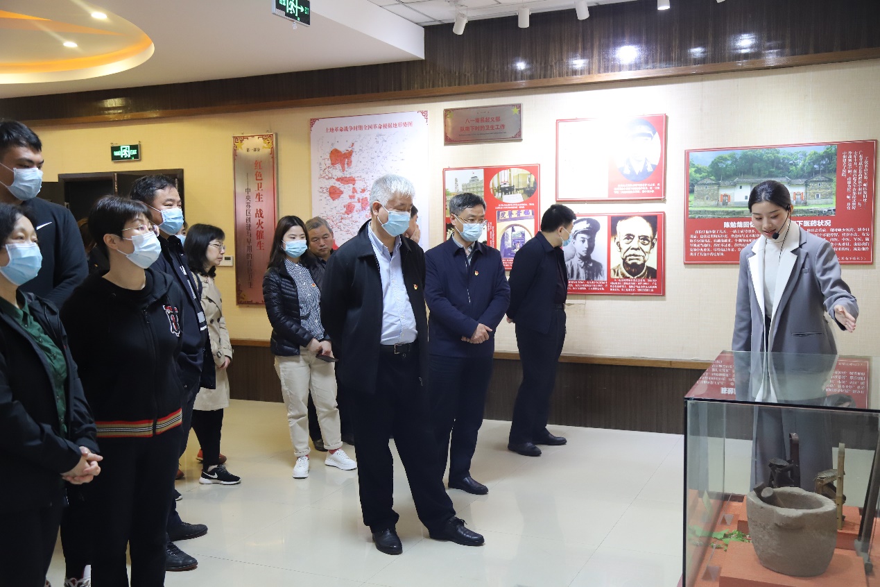 省卫生健康委的党员干部参加我校红色卫生史博物馆。通过一张张图片、一件件实物,他们深入了解了革命战争年代赣南红土地红色卫生的产生、发展和壮大,对波澜壮阔的红色卫生史有了系统理解和深切的感悟。