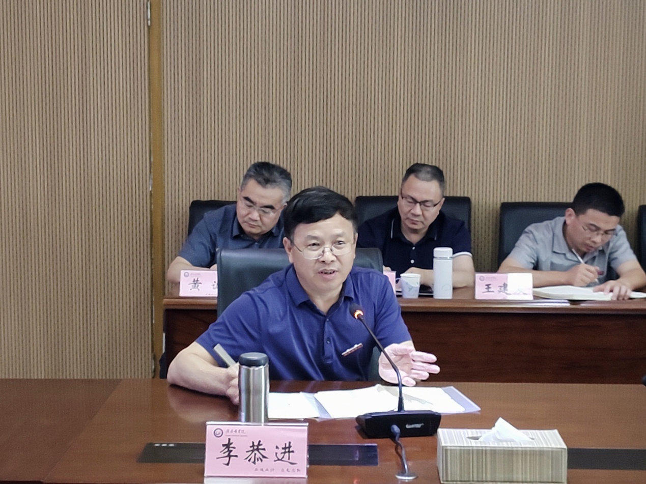 在收听收看视频会议后,李恭进讲了话。他首先梳理了学校近年来教师思想政治和师德师风建设方面开展的相关工作、取得的成效、存在的问题,并就下一步工作进行了部署。