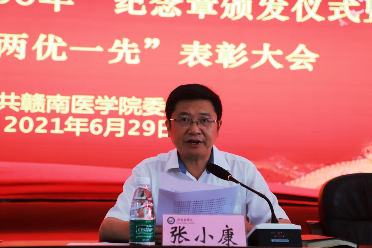 学校党委副书记、校长张小康宣读了“光荣在党50年”纪念章获得者名单和学校“两优一先”表彰决定。
