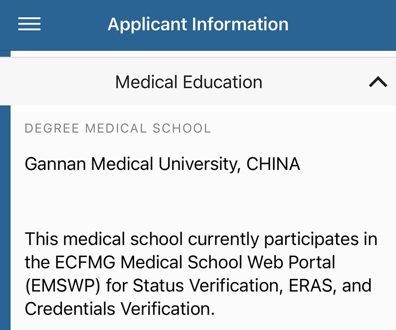 近日,从有关方面获悉,我校医学教育获美国外国医学院校毕业生教育委员会(英文简称ECFMG,网址:www.ecfmg.org)授权同意,自2021年6月30日开始,学校中外毕业生校友可在线申请美国ECFMG学位认证。该学位在线认证可实现学生在校表现评价表和成绩单的电子化上传和追踪认证进程,更好满足我校优秀校友的海外深造和就业需求,促进我校医学教育的国际影响力。