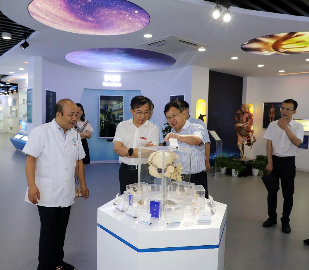 7月7日下午,井冈山大学校长曾建平一行7人到校交流座谈。学校党委书记李恭进会见并陪同曾建平一行参观了学校红色卫生史博物馆和人体生命科学馆。