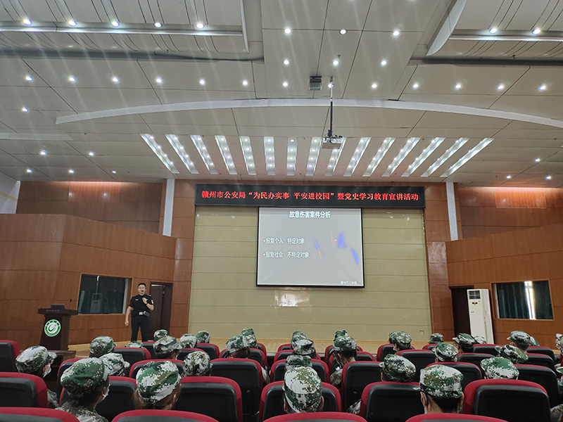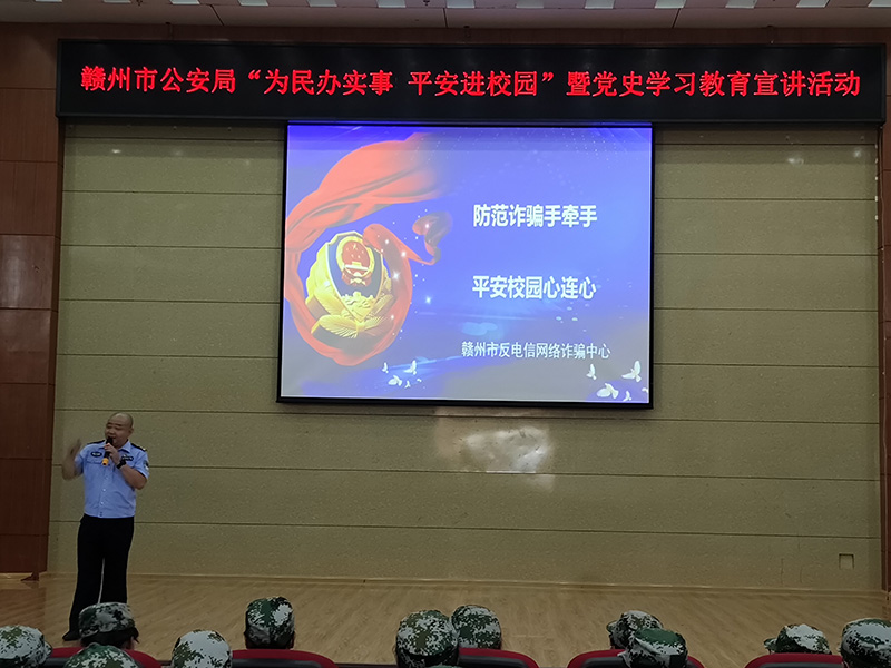 9月27日,赣州市公安局进校开展“为民办实事,平安进校园暨党史学习教育”宣讲活动。活动采用线上、线下的方式同步展开,实现了反诈宣传教育全覆盖。