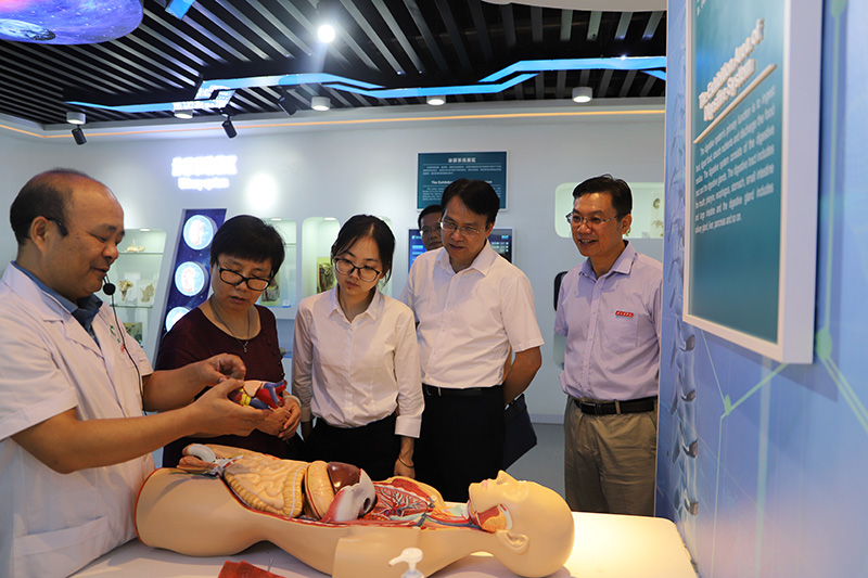 汤水清一行还参观了学校红色卫生史博物馆、人体生命科学馆和中央苏区医疗卫生与健康中国战略研究中心成果展。