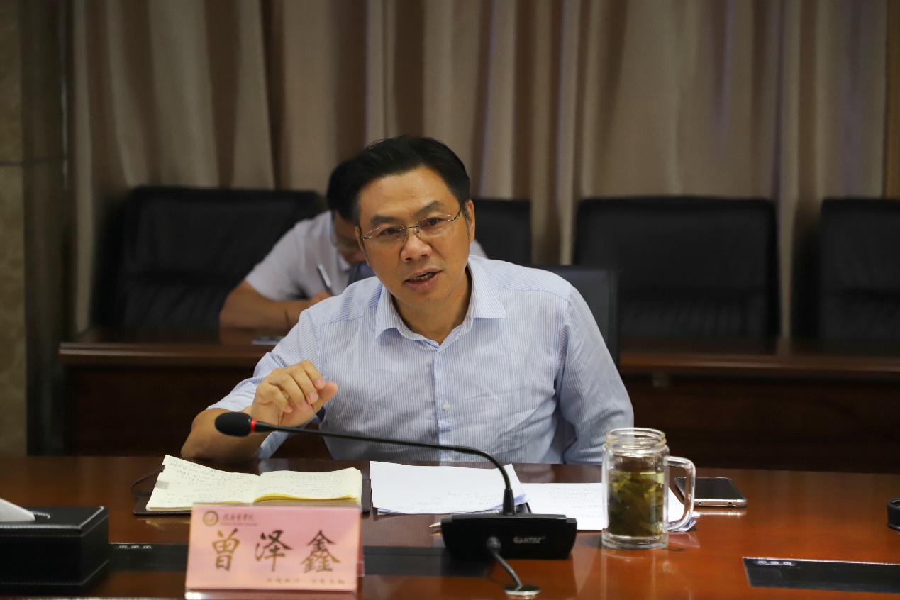 曾泽鑫强调,各有关部门、各学院要切实提高政治站位,对标上级安排部署,按照省委党史学习教育第二巡回指导组点出的问题,立行立改、整改到位,以实际行动推动党史学习教育走深走实。一是要深化推进。进一步学习贯彻好习近平总书记“七一”重要讲话精神,开展好“我为群众办实事”活动,学习使用好《中华人民共和国简史》《改革开放史》《社会主义简史》,将开新局、悟思想、办实事贯通起来。二是要查缺补漏。学校层面、学院层面、支部层面均要审视现状、查缺补漏、完善提高。三是要总结提升。抓紧时间对我校党史学习教育工作形成的经验、做法、成效进行梳理和提炼。四是要评议检查。通过开展各种形式的评议检查,特别是“我为群众办实事”活动的评议检查,发现问题、解决问题。