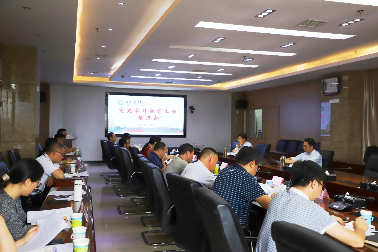 10月9日下午,我校在黄金校区召开党史学习教育工作推进会,党委副书记曾泽鑫出席会议并讲话,学校党委党史学习教育领导小组办公室成员单位、各下属党委负责同志参加会议。会议对贯彻落实省委党史学习教育领导小组办公室的近期工作安排进行了具体部署,对学校下一步党史学习教育工作提出了具体要求。