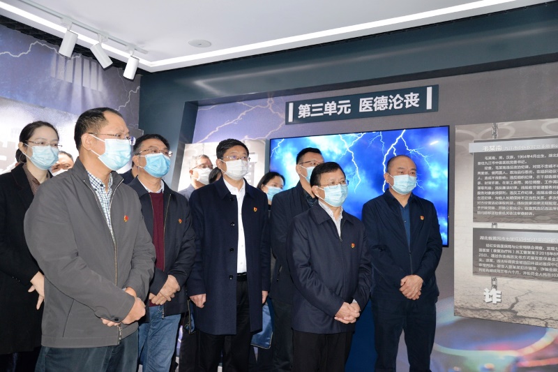 11月11日,学校党委书记李恭进率领校党委班子及理论学习中心组成员到我校新建成启用的反腐倡廉警示教育馆现场接受党风廉政警示教育,以案为鉴,深刻汲取教训,进一步推动全校党史学习教育走深走实。在家的校党委班子成员李恭进、张小康、曾泽鑫、陈亮、黄瑞忠、肖树辉、彭维杰、甘雅芬、廖志平、赖传景,各党群部门主要负责同志、各下属学院党委及直属附属医院党政主要负责同志等参加活动。