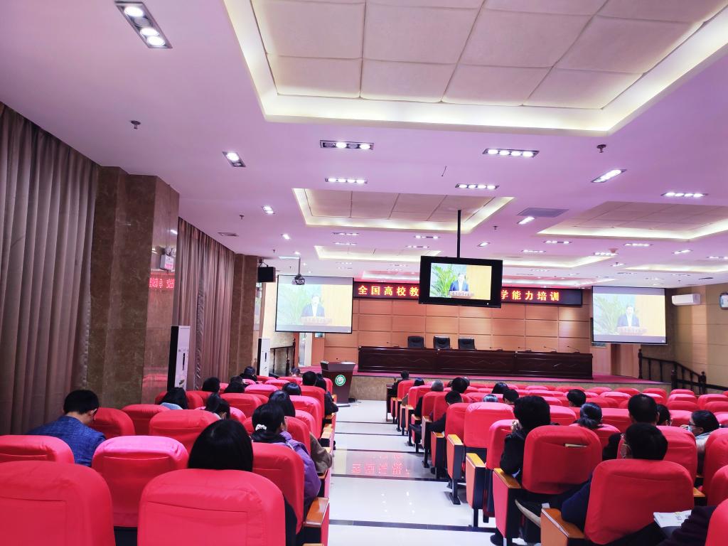 11月24日下午,我校在黄金校区集中参加全国高校教师课程思政教学能力培训。学校党委委员、副校长叶军明出席培训,相关职能部门负责同志、各学院党政领导、分管教学院长、一线教师170 余人参加培训。