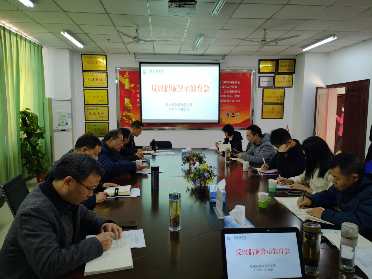 11月26日,学校机关第六党支部开展反腐倡廉警示教育专题学习。学校党委委员、副校长叶军明以普通党员身份参加。
