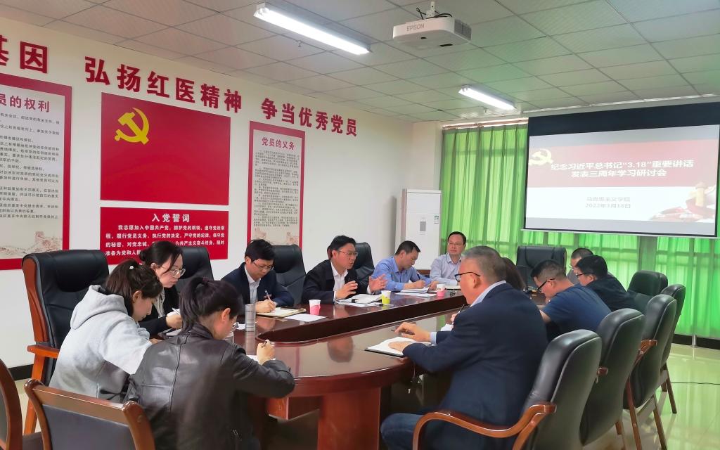 3月18日下午,马克思主义学院召开纪念习近平总书记“3.18”重要讲话发表三周年学习研讨会,学校党委副书记曾泽鑫出席,教务处、党委宣传部负责同志,以及该院全体思政课教师参加座谈。