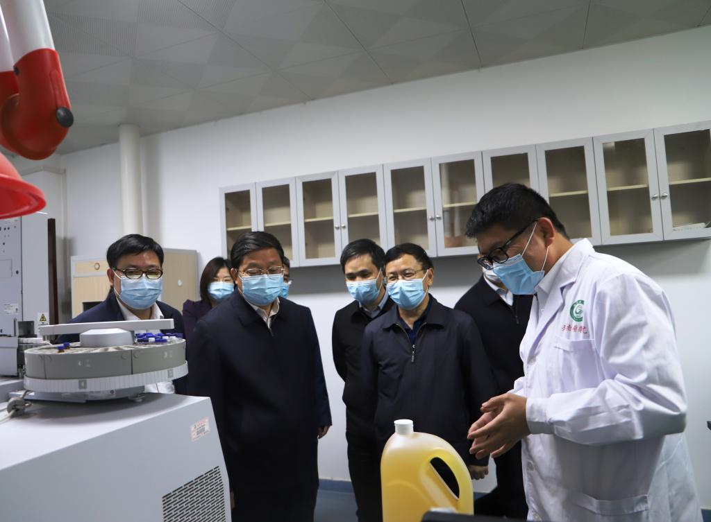 在科研中心,徐兵走进实验室,深入了解学校科研工作,关心科研人员的研究方向及进展。