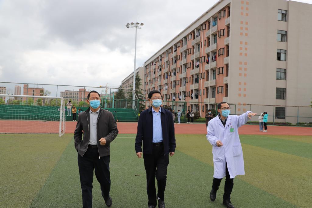 3月23日上午,学校党委副书记、校长、新冠肺炎疫情防控工作领导小组组长张小康实地检查学校疫情防控工作,党委委员、副校长、新冠肺炎疫情防控工作领导小组常务副组长黄瑞忠,以及相关部门负责人陪同。