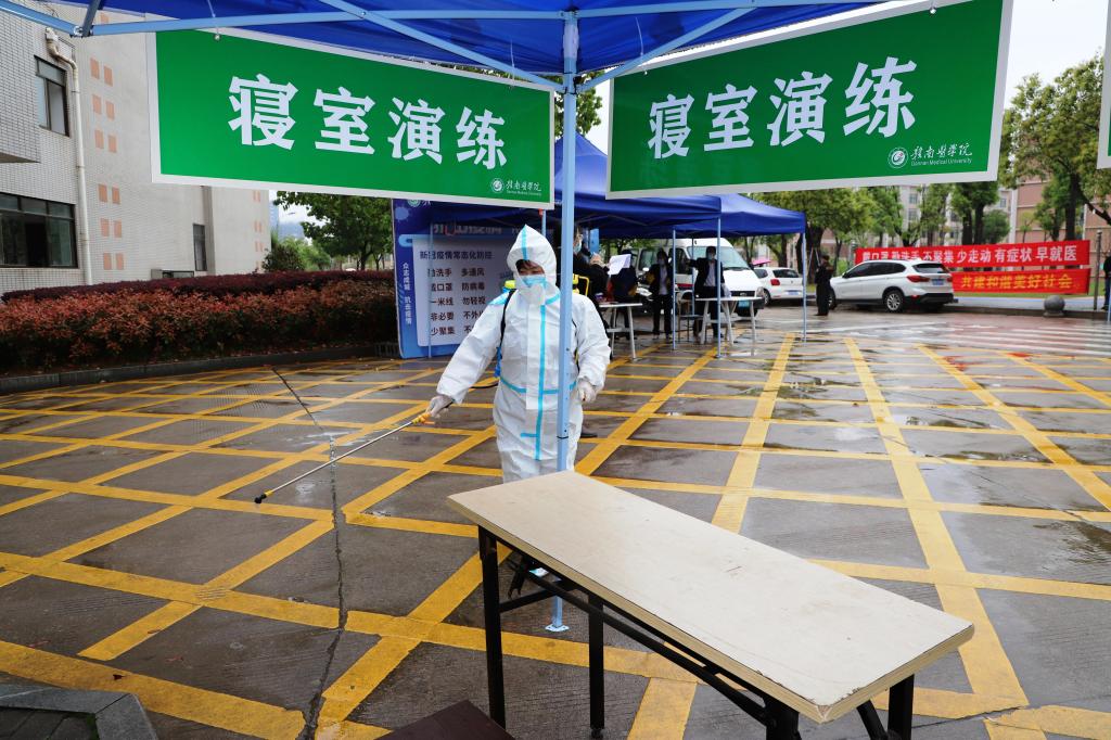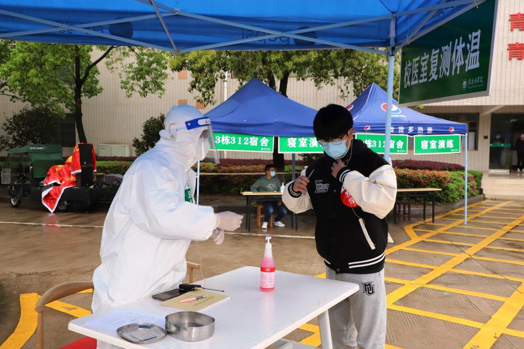 下午14:30,演练正式开始。本次演练模拟了“寝室晨检时有学生发热”“学生居寝健康观察”“校内密接、次密接学生的处置”三个场景。