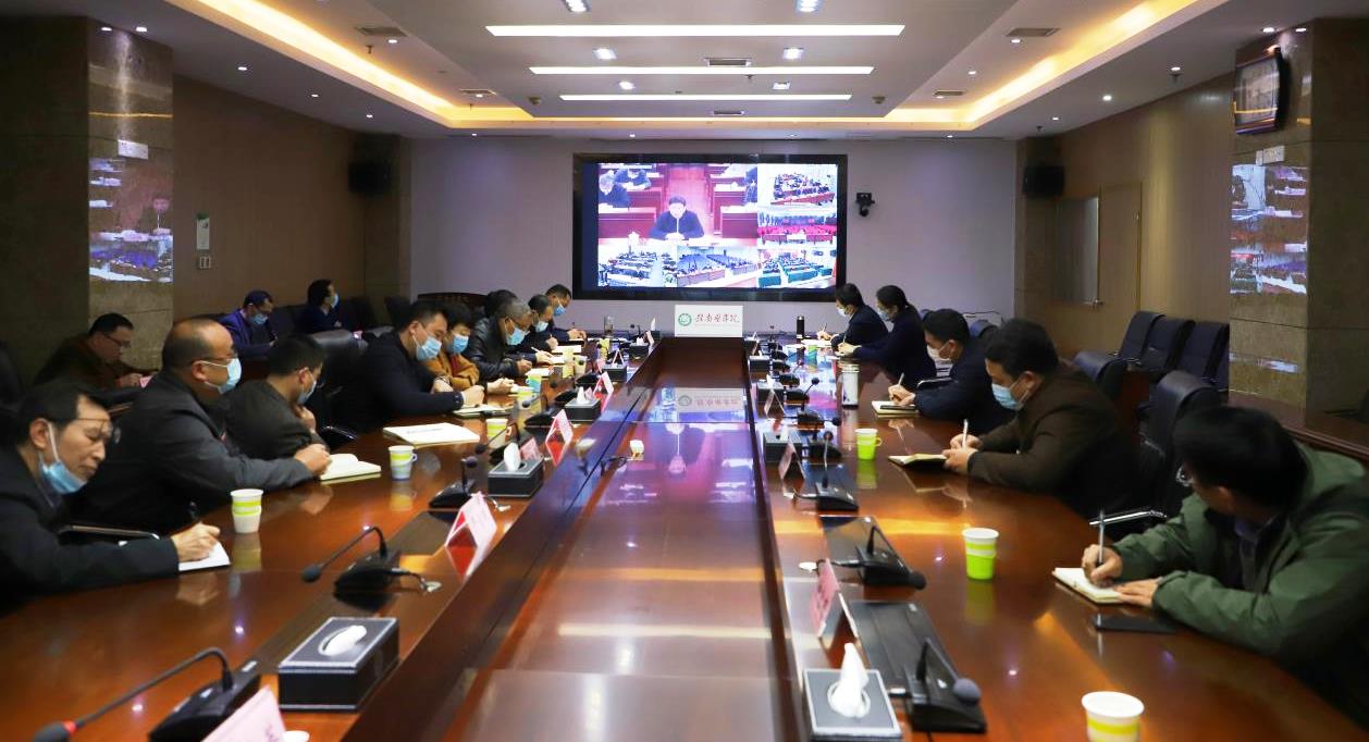 4月1日下午,第6次全省教育系统新冠肺炎疫情防控工作视频调度会议召开,省委教育工委副书记、省教育厅厅长郭杰忠出席并讲话。我校在黄金校区设分会场,学校党委副书记、校长、新冠肺炎疫情防控工作领导小组组长张小康,党委委员、副校长、新冠肺炎疫情防控工作领导小组常务副组长黄瑞忠出席。