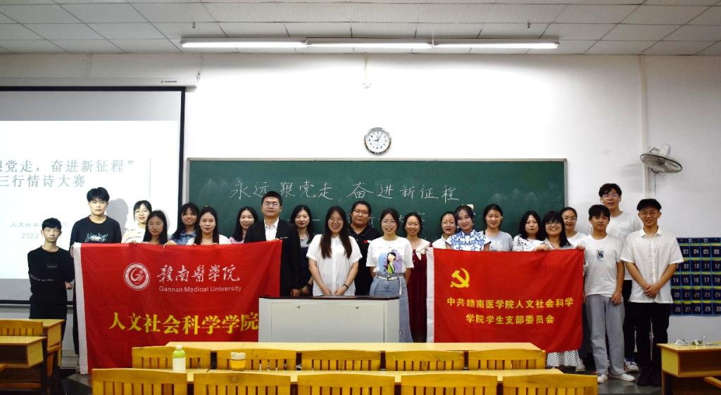 5月19日晚,人文社会科学学院在黄金校区举办了“永远跟党走,奋进新征程”三行情诗大赛,经过线上投票,共选出十位学生进入决赛,该院辅导员、校学生会主席、院学生会主席团担任评委,学生代表到场观看。