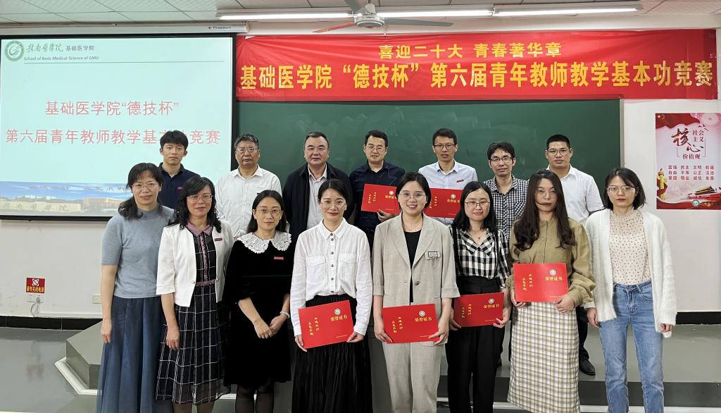 谢水祥指出,教学基本功竞赛是青年教师提升教学技能的重要平台,青年教师要以“四有”好老师标准严格要求自己,竞赛共11名青年教师参加。经过教案评比、课堂教学与教学反思三个环节的激烈角逐,展示了该院青年教师扎实的基本功。来自人体解剖学教研室的黄金玉荣获一等奖,人体解剖学教研室何文姬和医学生理学教研室吕昊琴荣获二等奖,生物化学与分子生物学教研室冷小敏、人体解剖学教研室唐晓璐、生物技术教研室张俊杰荣获三等奖。