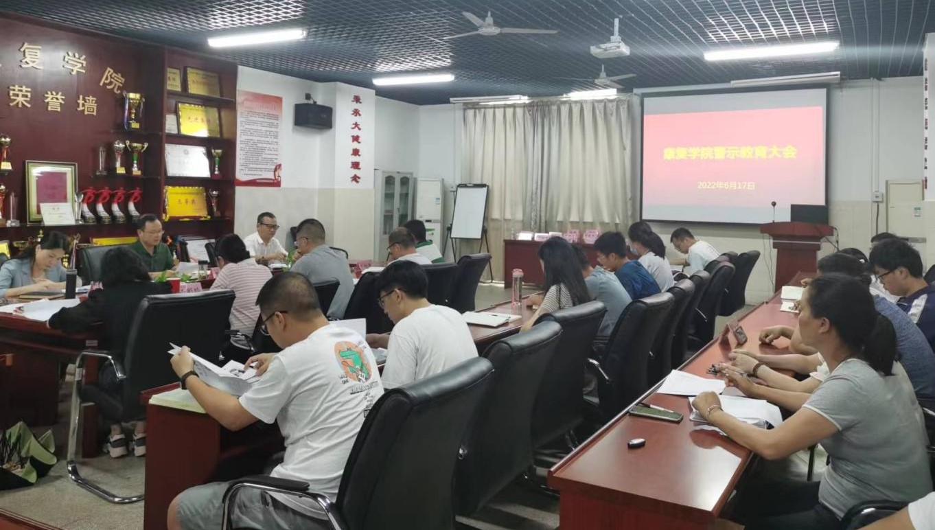 6月17日下午,康复学院在黄金校区举行警示教育大会,全体教职工参加,该院曾新华书记主持。