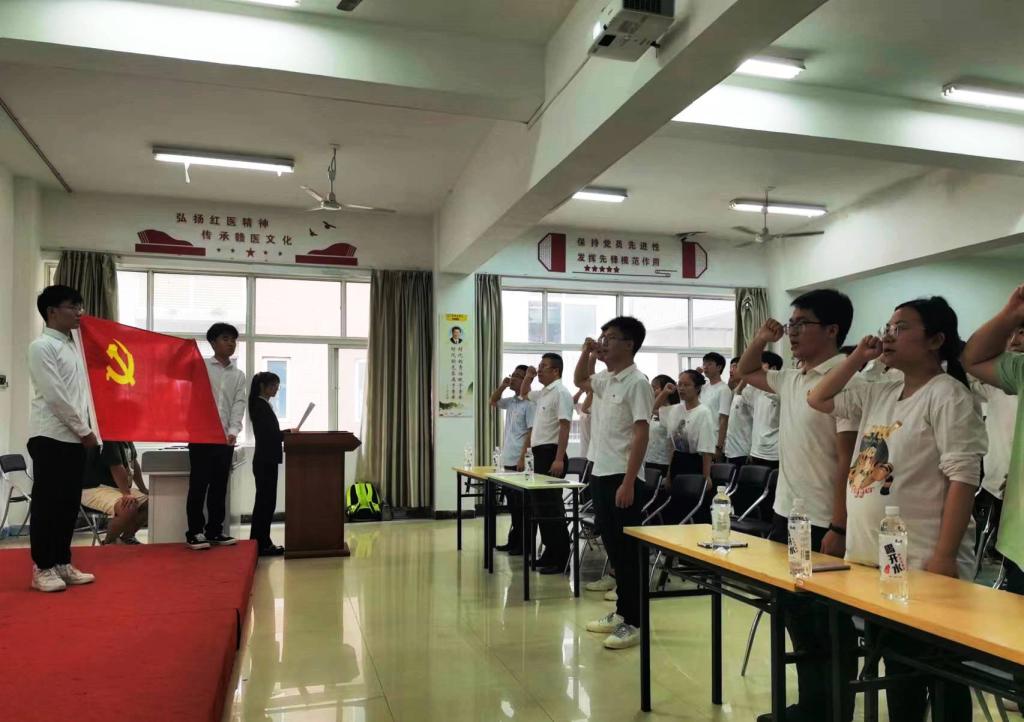 6月17日,基础医学院在黄金校区举行新党员入党宣誓仪式。该院党委副书记刘志春以及各学生党支部书记、各支部预备党员参加。