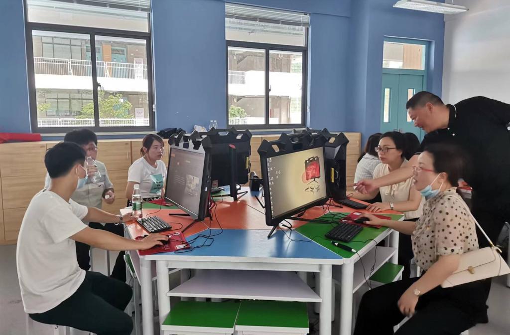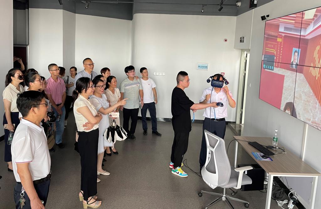 6月30日,马克思主义学院党委书记连璐带领全体教师前往蓉江新区云创智谷江西万锐智能科技有限公司、赣州市第十五中学等地调研。技术人员详细讲解智慧教室、直播间等新媒体技术实践案例,并带领大家体验VR智慧党建体验馆、虚拟课堂、智慧教室。