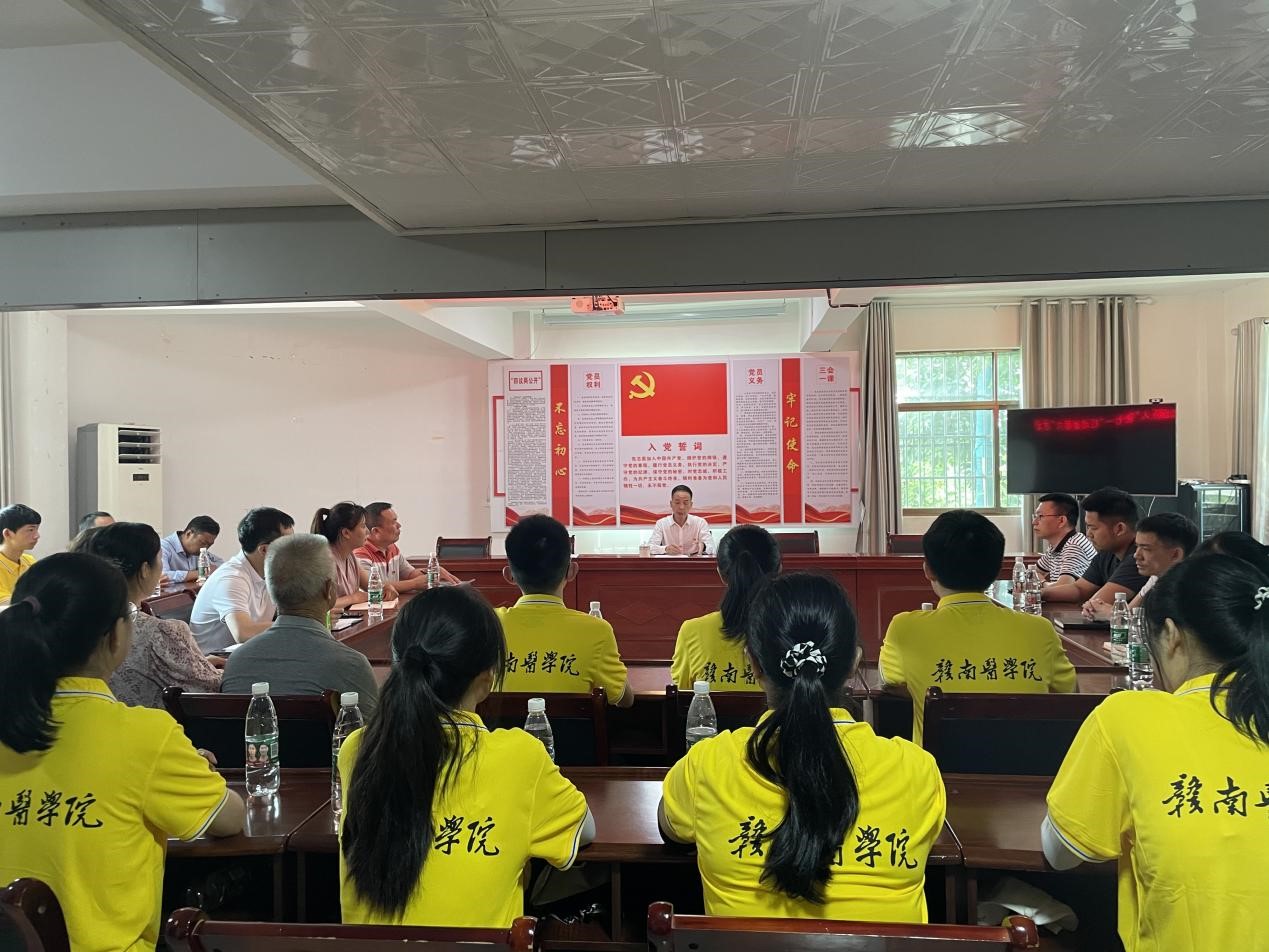 在潭东镇过路村,蓉江新区行政审批局负责人王启财为该院实践团成员、党员村民等人讲授了一节题为《忆百年峥嵘 做时代新人》的专题党课,并鼓励实践团成员学习革命先烈精神,将小我融入大我,将青春奉献到党和人民需要的地方去。