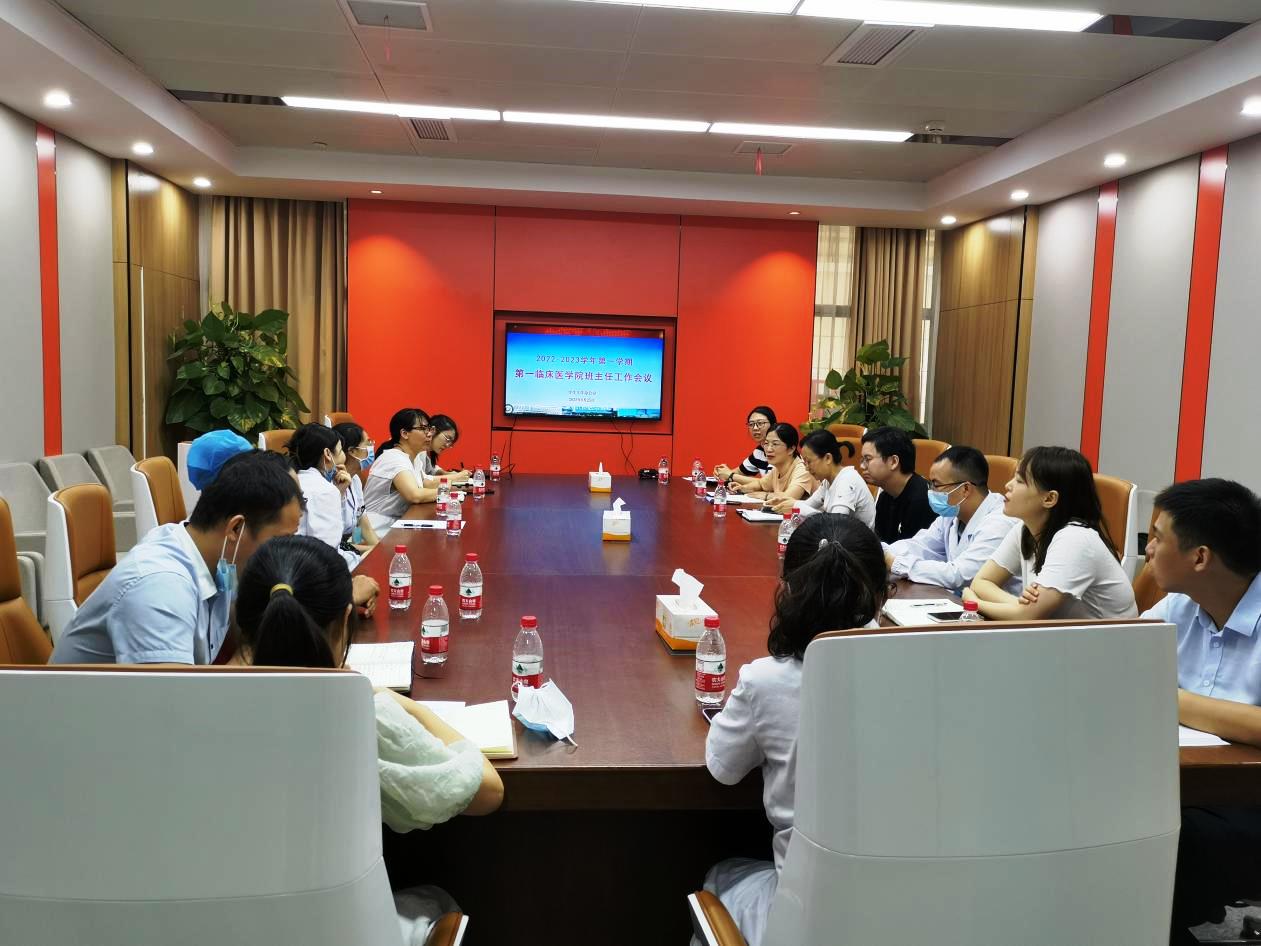 为确保新学期各项工作顺利开展,根据学校开学暨迎新工作安排,8月25日,第一临床医学院组织召开2022-2023学年第一学期班主任工作会暨班主任培训会。第一临床医学院全体辅导员、班主任参加会议。