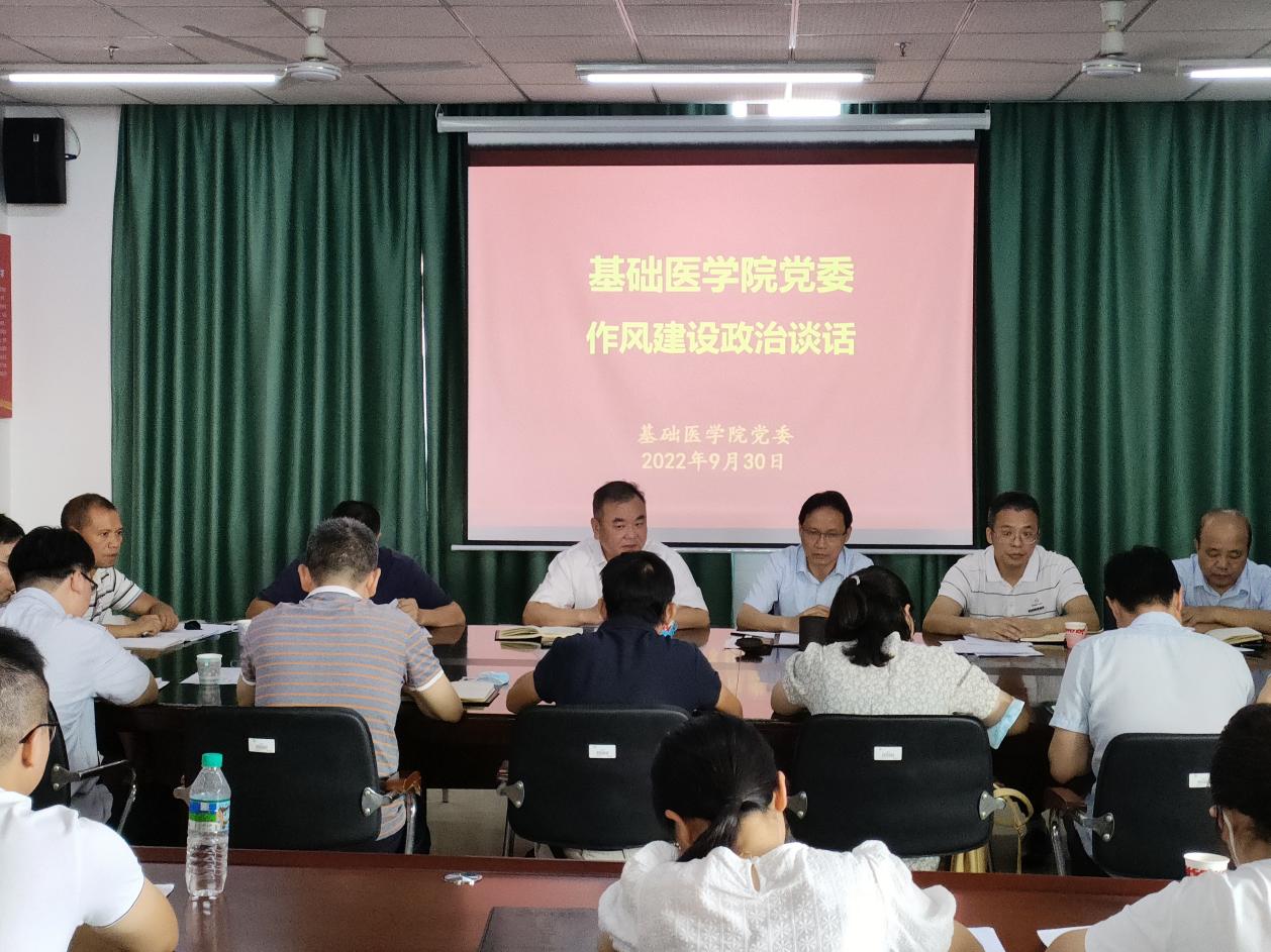 9月30日上午,基础医学院党委对科室主任、党支部书记进行集体政治谈话。学院党政班子成员,各科室主任、党支部书记参加会议,会议由党委书记颜剑主持。