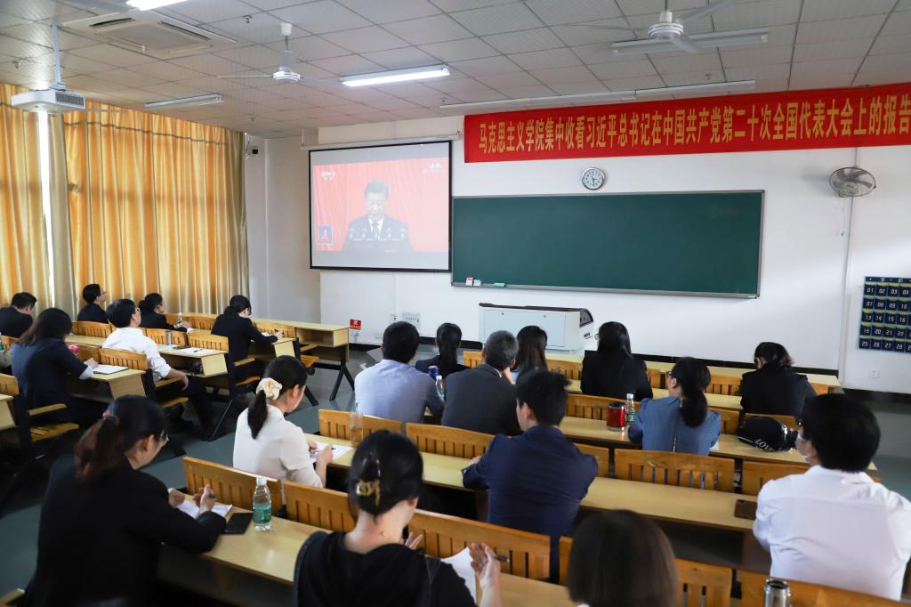 10月16日上午,中国共产党第二十次全国代表大会在北京人民大会堂隆重开幕。学校党委委员、学院院长廖志平,学院党委书记连璐,学院全体师生党员以及学生代表在黄金校区二教2502、2206教室集中收看了党的二十大开幕盛况。
