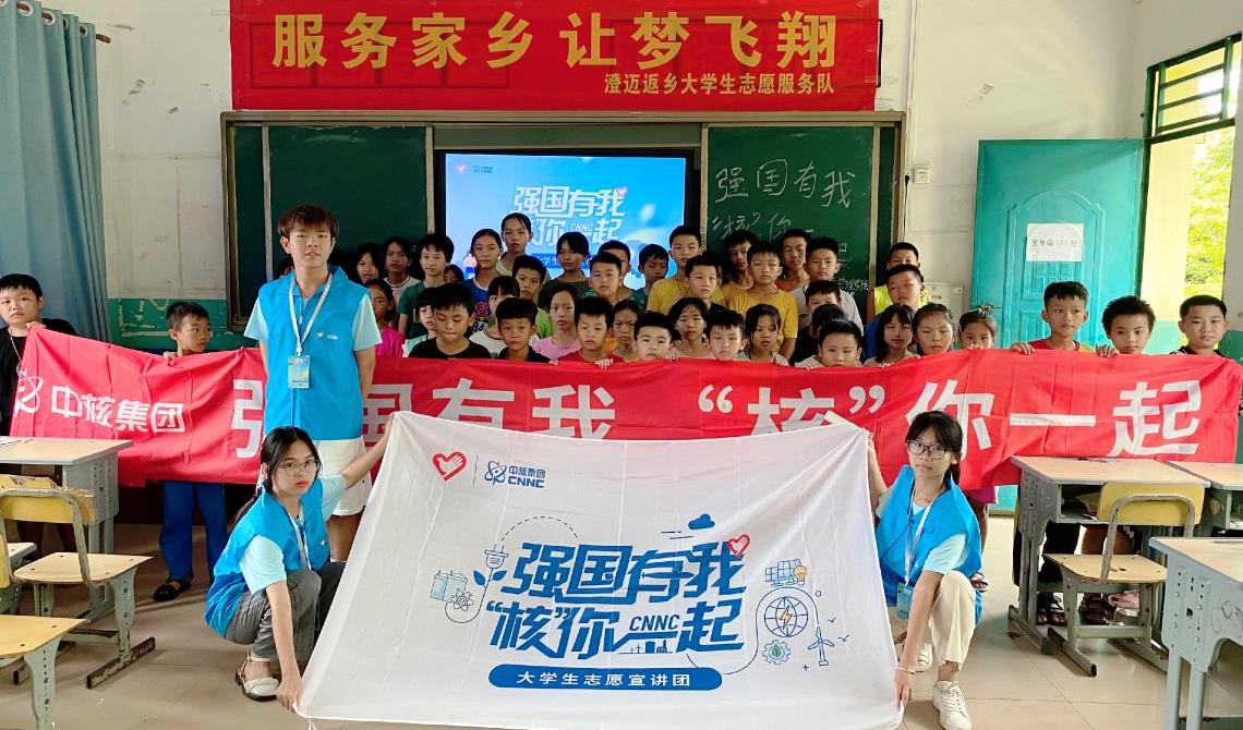 据悉,该院绿色核能宣讲团成功入选由共青团中央、中国核工业集团有限公司、中国青年志愿者协会秘书处联合组织的2022年“强国有我 ‘核’你一起”千支大学生志愿宣讲团。 该宣讲团不仅多次在校园内开展宣讲,还在今年暑期赴赣州市章贡区建国路社区、海南省澄迈县博芳希望小学等地开展志愿服务宣讲,为社会公众带来硬“核”知识,为实现强国目标贡献青春力量,不断发扬志愿服务精神,以饱满的热情庆祝党的二十大胜利召开。