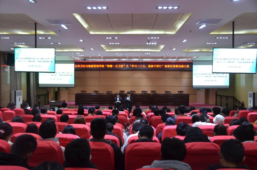 12月14日,公共卫生与健康管理学院在黄金校区举办了 “博雅·公卫杯”之“健康科普视频大赛。该院党委书记范启兰、党委副书记邱伟、各教研室主任、专业老师、学工办全体老师及学生代表200余人参加。