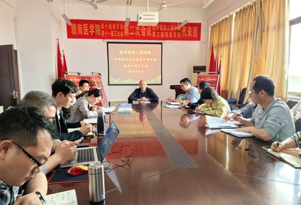 4月12日,医学信息工程学院召开“4·15”全民国家安全教育日保密宣传教育月活动动员大会,该院党委书记唐明主持,全院教职工参加会议。