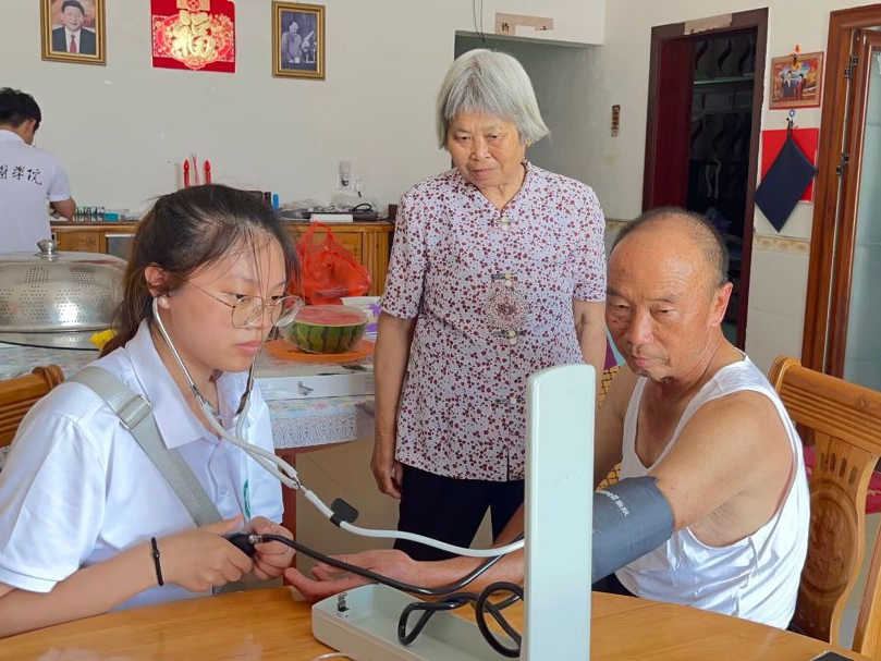 期间,实践队员还为老年人测量了血压,了解其身体状况,并为他们提供饮食和运动建议、赠送防暑降温用品。