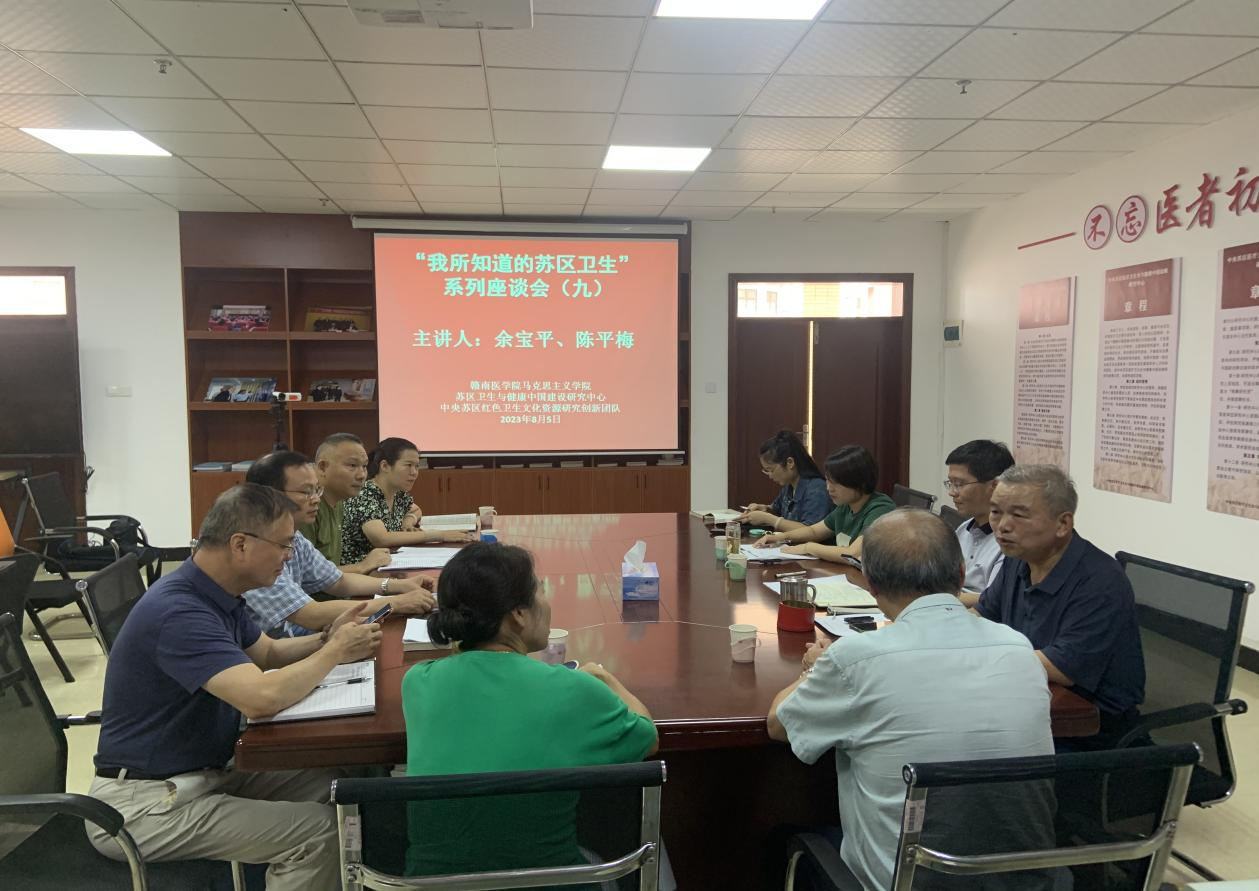 8月5日,苏区卫生与健康中国建设研究中心邀请了红军后代——客家山歌、井冈红谣省级非遗代表性传承人陈平梅,井冈山红军医药非遗代表性传承人余宝平夫妇作客研究中心讲述“我所知道的苏区卫生”之井冈山斗争时期的红色医疗卫生工作。研究中心首席专家刘善玖教授主持座谈会,相关团队成员参会。