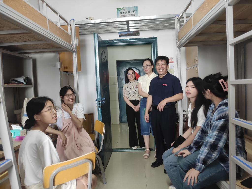 9月8日上午,马克思主义学院院长廖志平携学院领导和辅导员深入新生宿舍走访慰问。