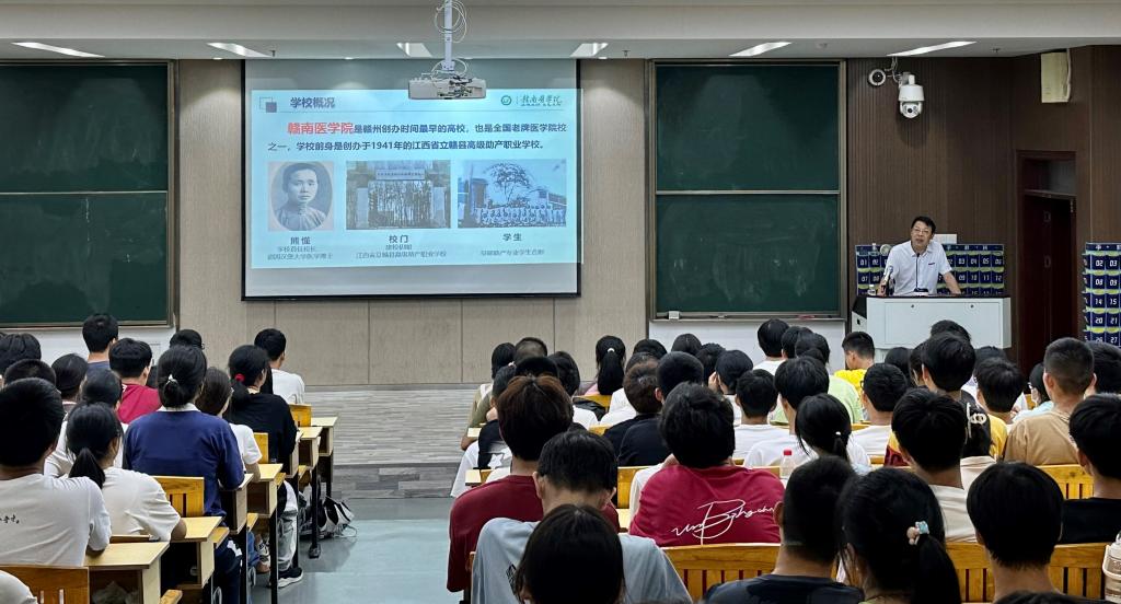 王立从校名沿革开始,带领新生回顾了学校办学历程,阐述了办学特色与成效,介绍了学院概况,并表示学校始终坚持立德树人,构建了独具特色的红医精神育人体系,在82年的办学历程中,培养了如肖卿福、万少华、李青峰在内的医学良才,为国家卫生事业发展作出了突出贡献。