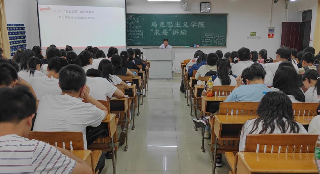 9月24日,马克思主义学院开展“求是”讲坛第十期讲座,刘名望博士担任主讲,全院学生参加。