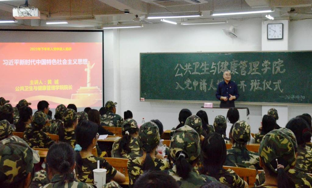 10月17日晚上,公共卫生与健康管理学院在黄金校区举行2023-2024学年第一学期入党申请人培训开班仪式暨培训第一讲。该院院长黄诚、各学生党支部书记及入党申请人培训学员100余人参加。