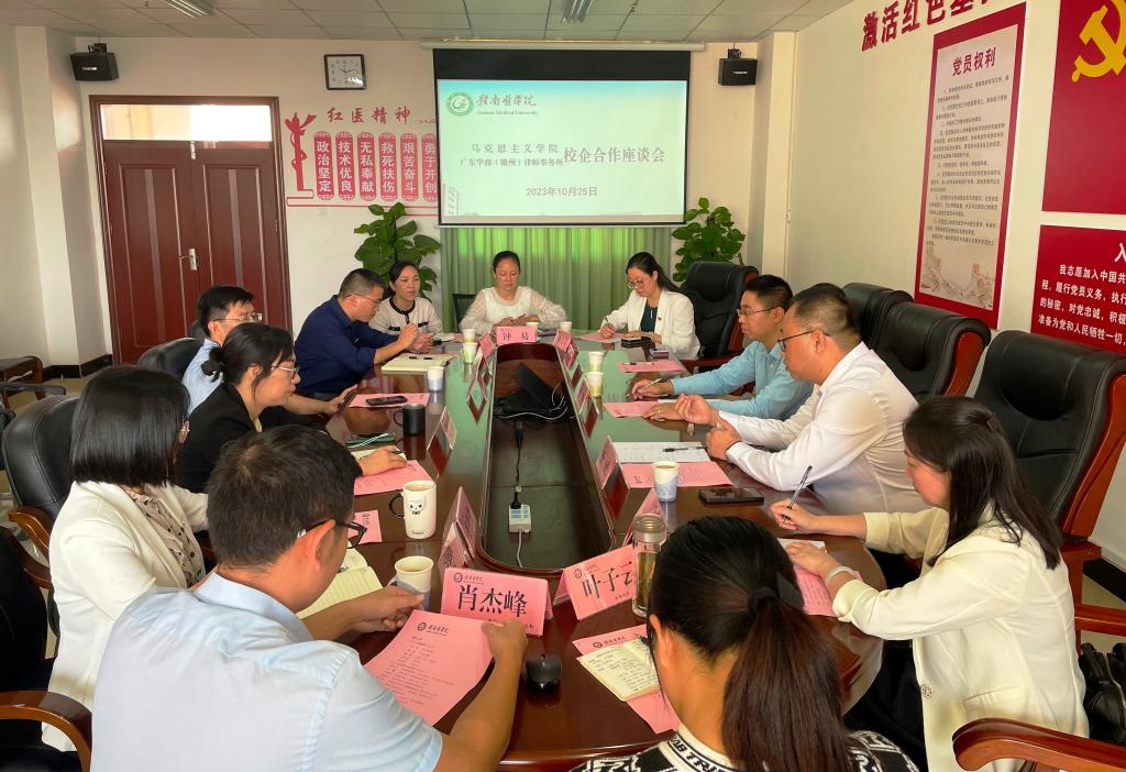 10月25日,广东华商(赣州)律师事务所党支部书记李翔一行5人来校考察交流,马克思主义学院领导班子,学校学工部(处)负责人,法学专业教师、大学生心理健康教育与咨询中心教师代表共同参加座谈会。