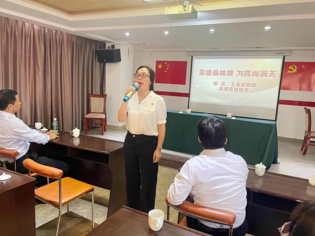 11月4日,马克思主义学院为退休教职工郭玟、王志坚两位教授举行了荣退欢送仪式。学院副院长、分工会主席曾芳莲主持,学院党委领导班子成员以及全体教职工共同见证了这感人又温馨的时刻。
