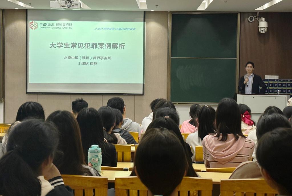 11月7日晚,人文社会科学学院在黄金校区举办“知法敬法 与法同行”大学生法制安全教育讲座。北京中银(赣州)律师事务所丁建欣律师为2023级全体新生及部分老生代表上了一堂严肃而生动的安全防范与法律意识报告会。