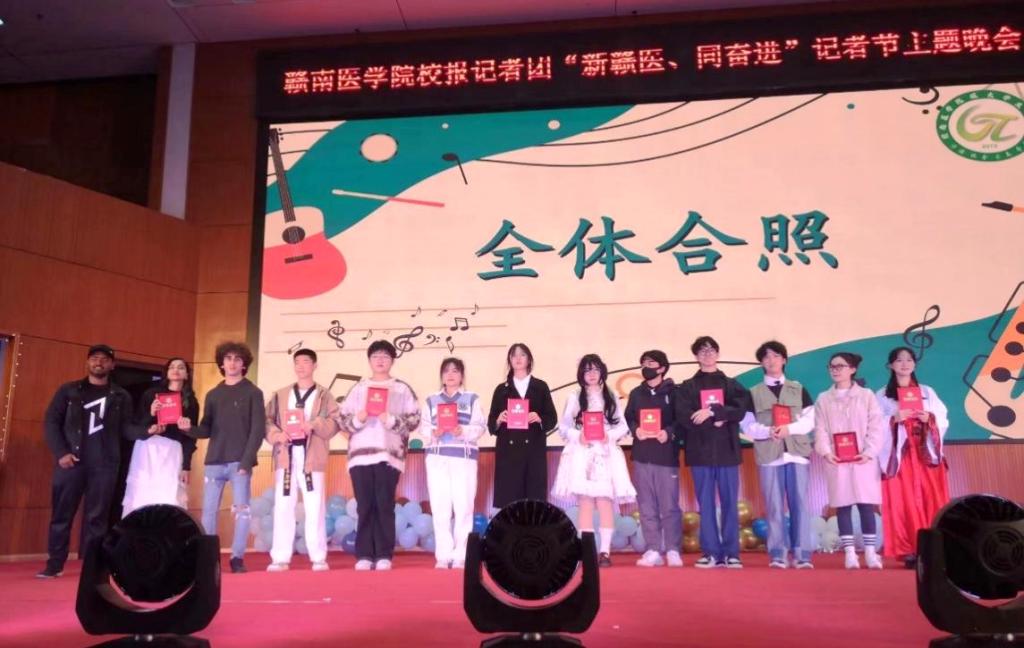 11月18日,我校校报记者团在黄金校区举行“新赣医、同奋进”记者节主题晚会。晚会共有学生代表200余人参加。