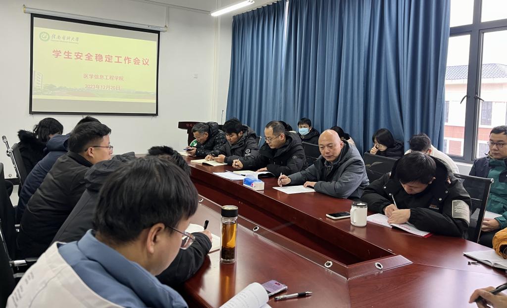 12月20日,医学信息工程学院在黄金校区召开学生安全稳定工作会议。该院党委书记唐明及全体班主任、辅导员参加会议。