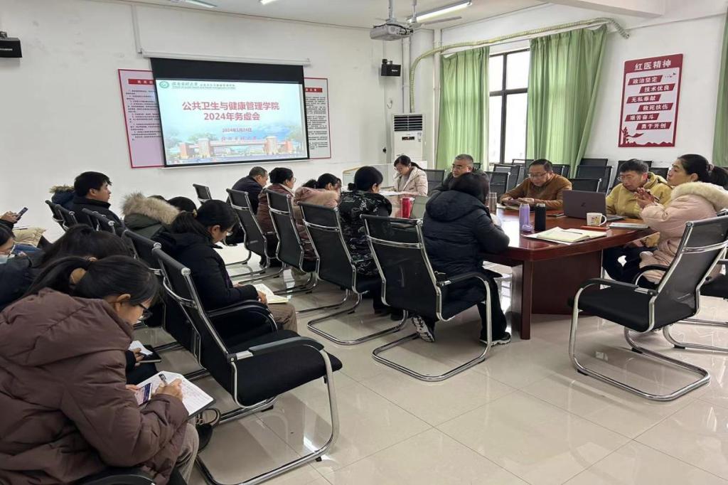 1月24日,公共卫生与健康管理学院召开2024年工作务虚会。学院院长黄诚主持,学院领导班子、各科室负责人、教学秘书、支部书记参会。