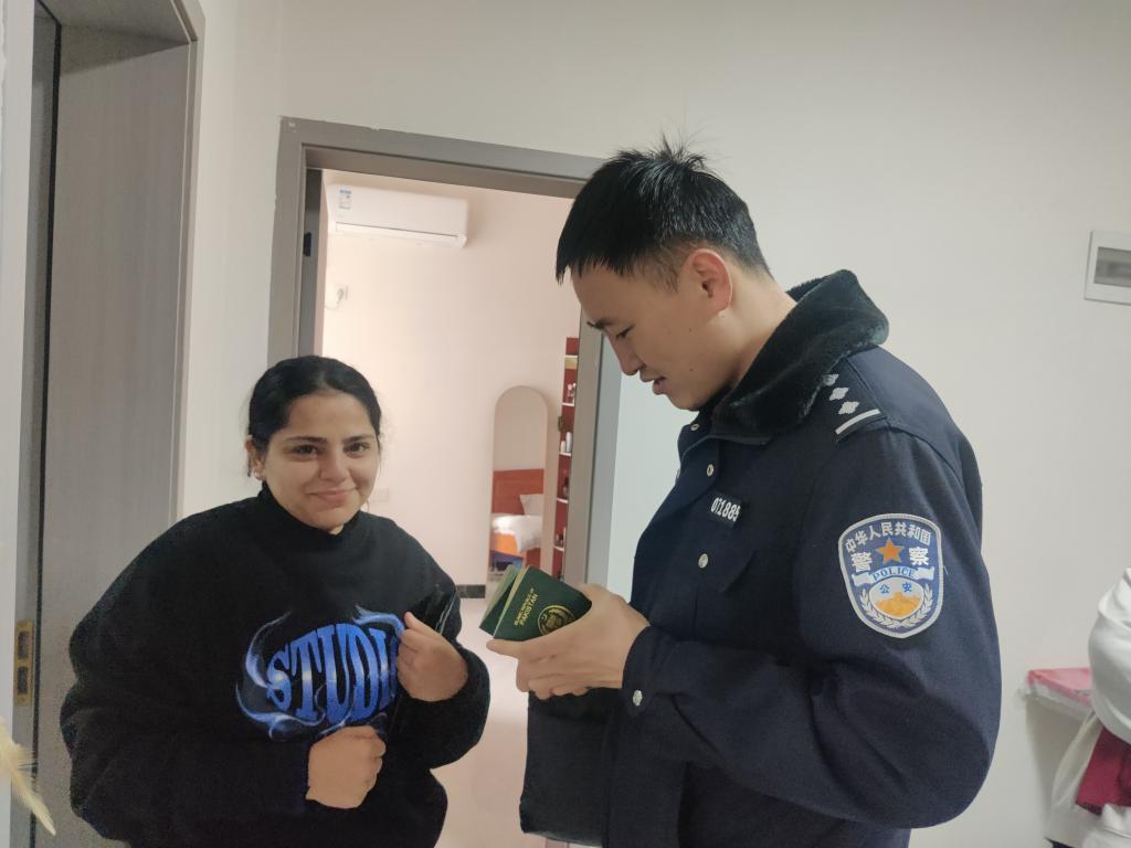 在本次安全检查活动中,钟富有和民警们深入留学生的居所,对留学生们的生活环境进行了全面检查,特别是用电安全、消防安全、食品安全、交通安全等多方面隐患,着重了提醒了留学生们注意室内大功率电器的使用安全,不得私拉乱接电线,以防发生火灾以及遵守交规等安全警示知识,同时,还督促留学生做好个人卫生工作,培养良好的生活习惯。出入境民警检查了留学生们的护照及签证,要求国际教育学院和留学生要做好住宿登记,不得非法就业,关注居留许可到期时间,避免违法居留情况的发生。蟠龙派出所作为属地管辖部门,也对留学生做了相应安全提醒和法律宣传。