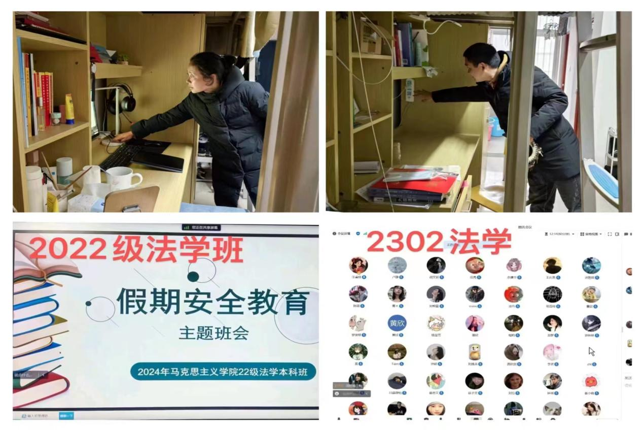 班主任、辅导员多渠道多形式提醒每一位学生注意安全,通过线上线下相结合的方式开展安全教育主题班会,深入学生宿舍一线排查违规大功率电器使用情况和其他安全隐患,确保安全无死角。