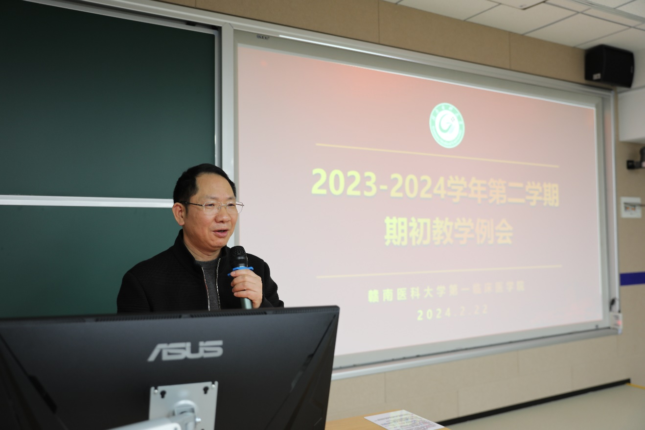2月22日,第一临床医学院召开2023-2024学年第二学期期初教学工作例会。学校党委委员、副校长,学院党委书记黄瑞忠,学院党委副书记、院长邹晓峰等出席会议。各专业负责人、教研室主任、教学秘书、教学小组组长、教学干事、职能科室负责人,临床教学培训中心及临床技能实验室负责人参加会议。