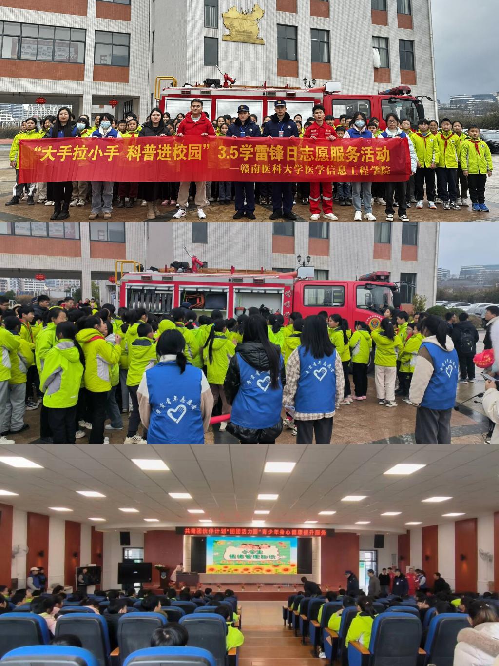 3月1日,该院志愿服务队联合章贡区虔青志愿者协会走进章贡区吉埠小学开展“大手拉小手 科普进校园”活动,志愿者们协助开展心理健康教育主题讲座和消防安全教育等。