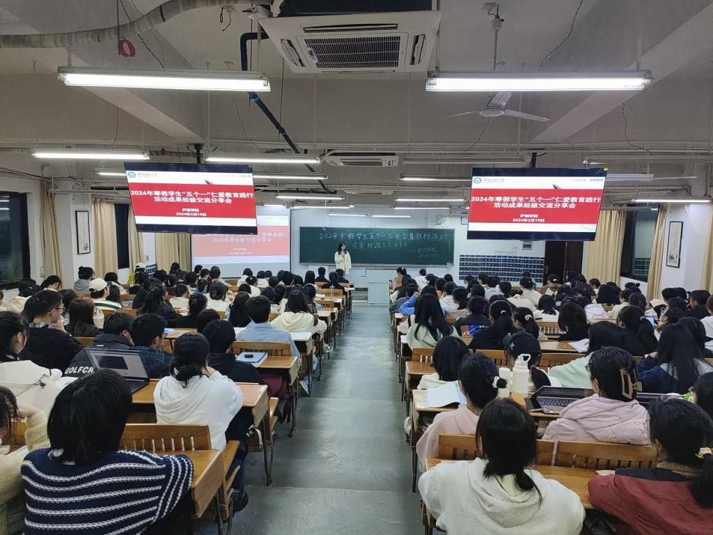 近日,护理学院在黄金、章贡两校区举行2024年寒假“五个一”仁爱教育践行活动成果经验交流分享会,该院学工办辅导员、优秀作品学生代表、各年级学生代表400余人参加。