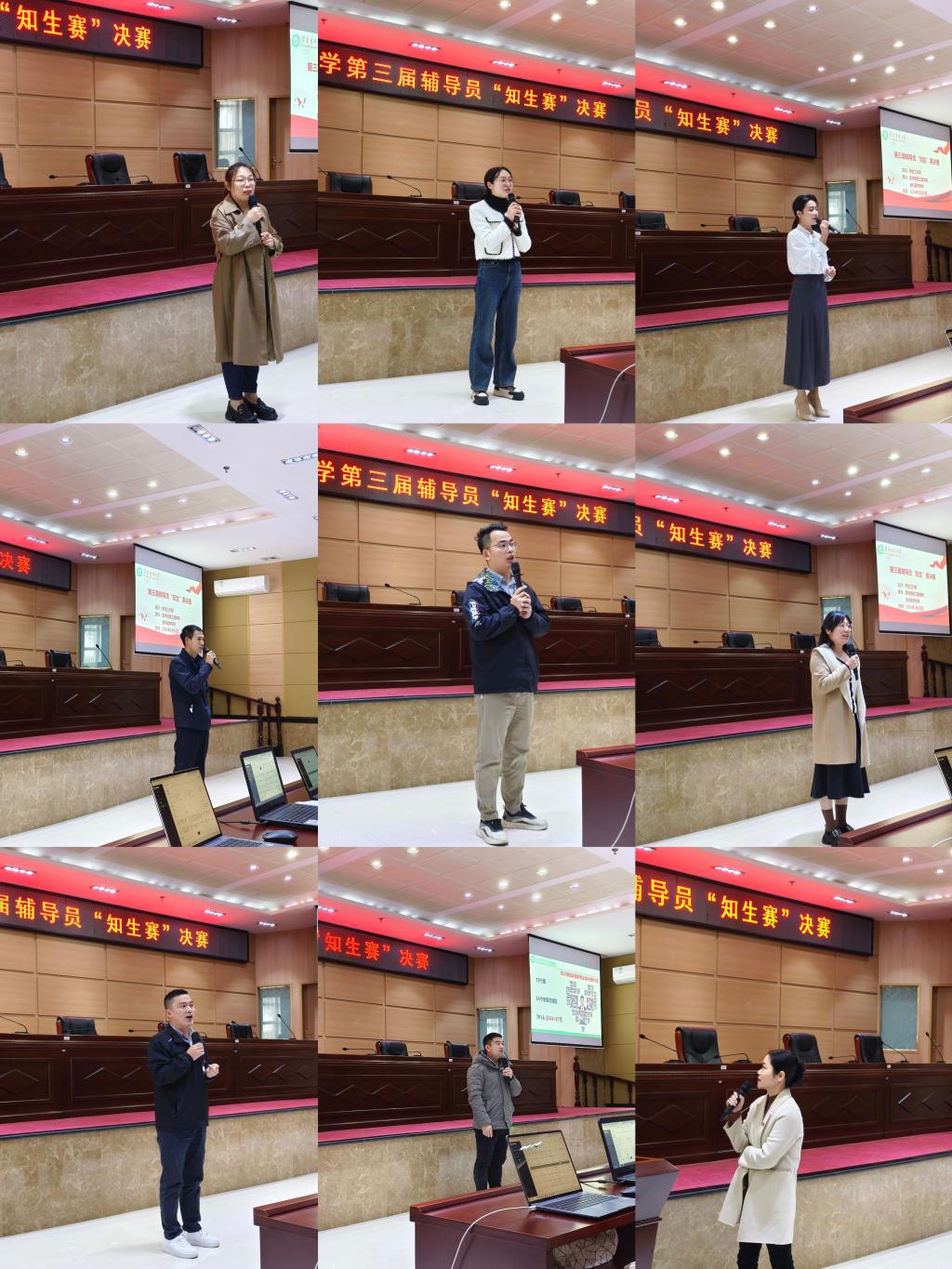 比赛中,参赛辅导员老师紧扣要求,沉着冷静、娓娓道来,充分展示了我校辅导员队伍紧紧围绕学生、关爱学生、服务学生的良好素质能力和精神面貌。经过激烈的比拼,最终基础医学院李鑫获得一等奖;全科医学学院黄帝隆、护理学院罗敏、康复学院上官静珊3名老师获得二等奖;人文社会科学学院周佳悦、医学信息工程学院陈君伟、第一临床医学院成雁、马克思主义学院郭伟卫、第一临床医学院肖方斌6名老师获得三等奖。