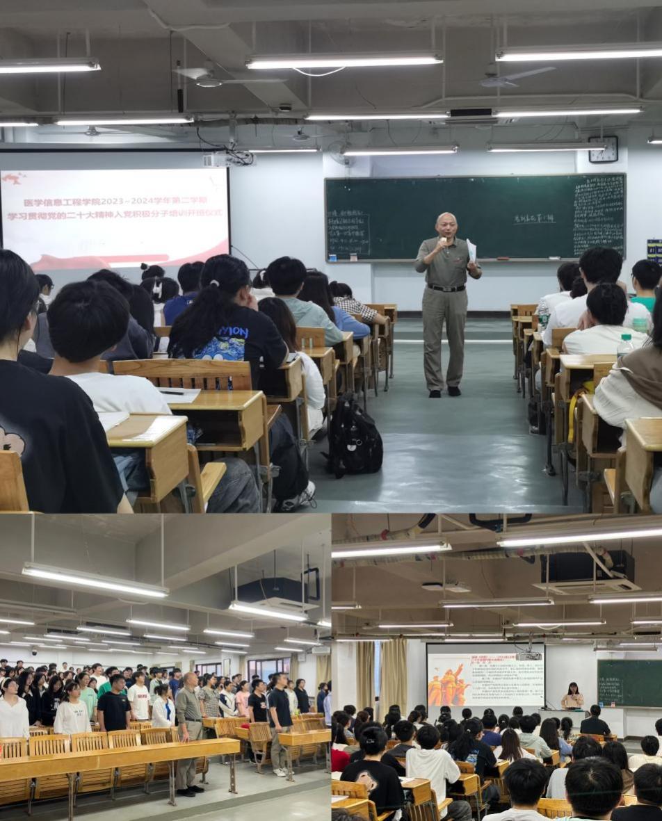 4月15日晚,医学信息工程学院在黄金校区举办入党积极分子培训班,该院党委书记唐明参加开班仪式并进行集中授课第一讲,辅导员及81名入党积极分子参加。